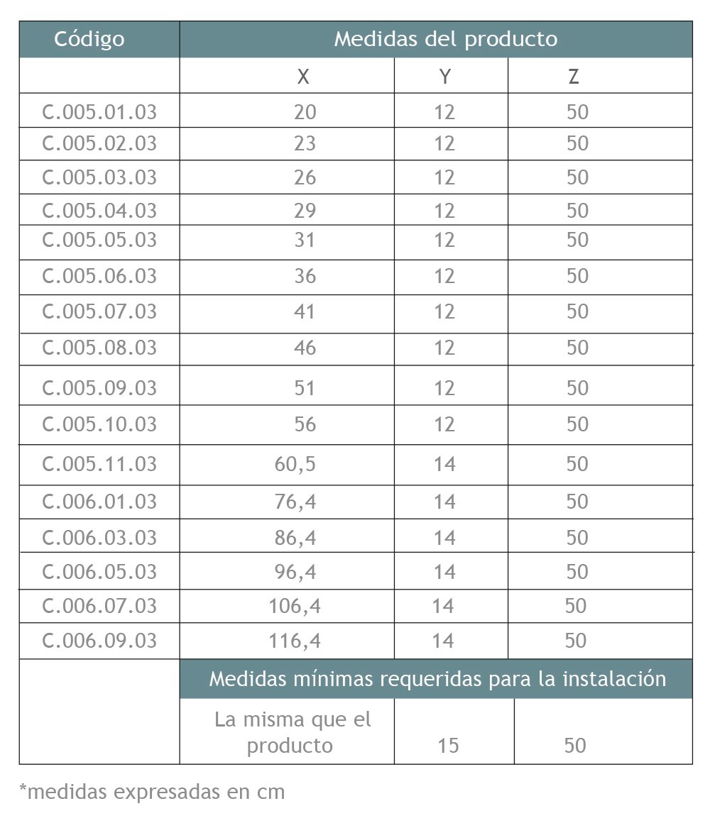 | Importante: | La medida de X es con las guías incluidas. |